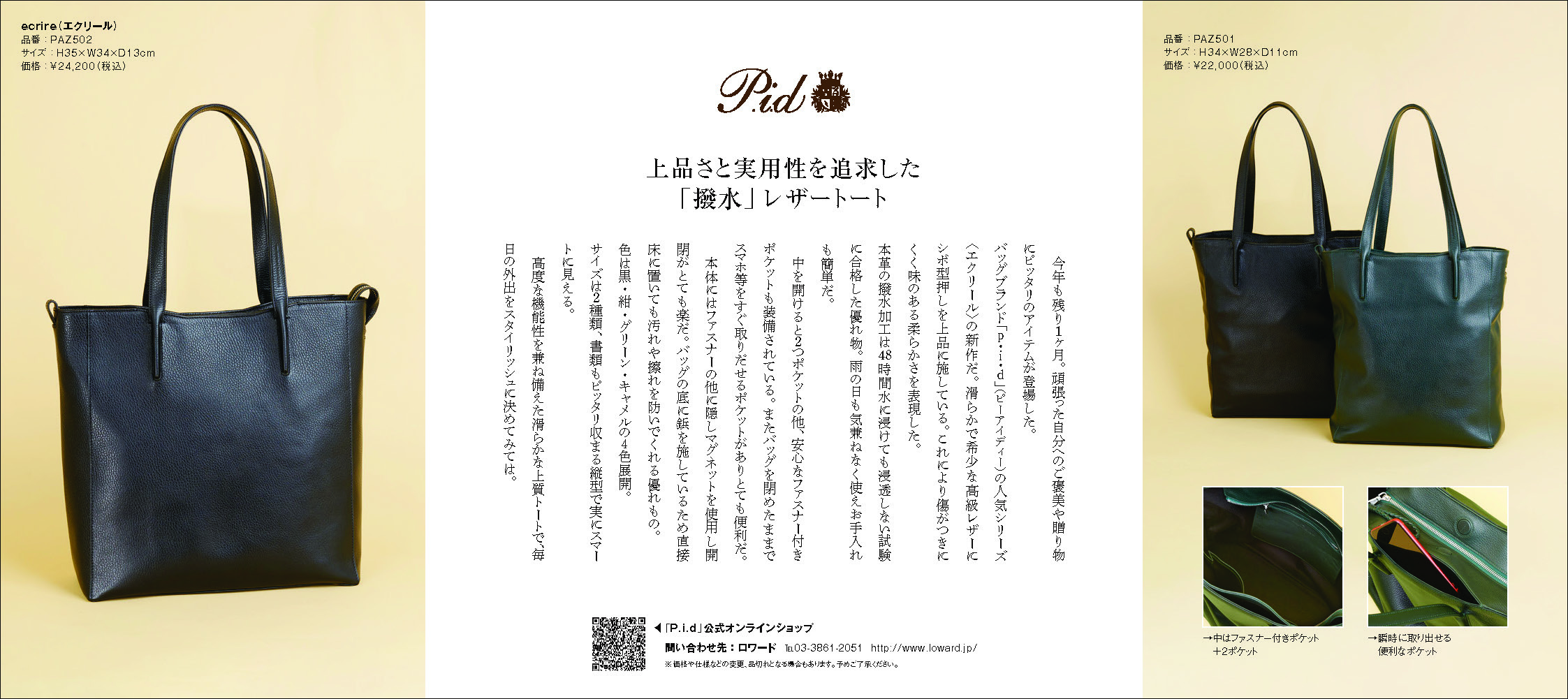 pen 2020 No.492にP.I.Dの新シリーズ ゴートレザートートが掲載されました。